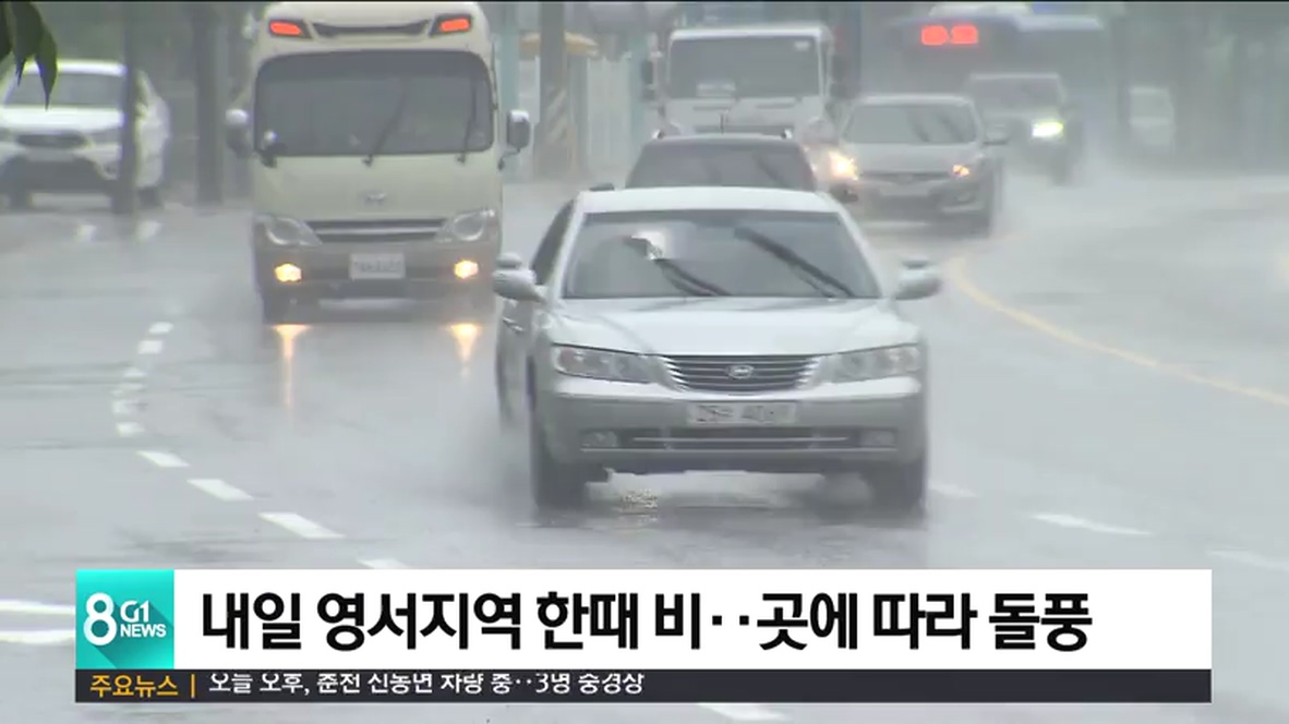 내일 영서지역 한때 비...곳에따라 돌풍