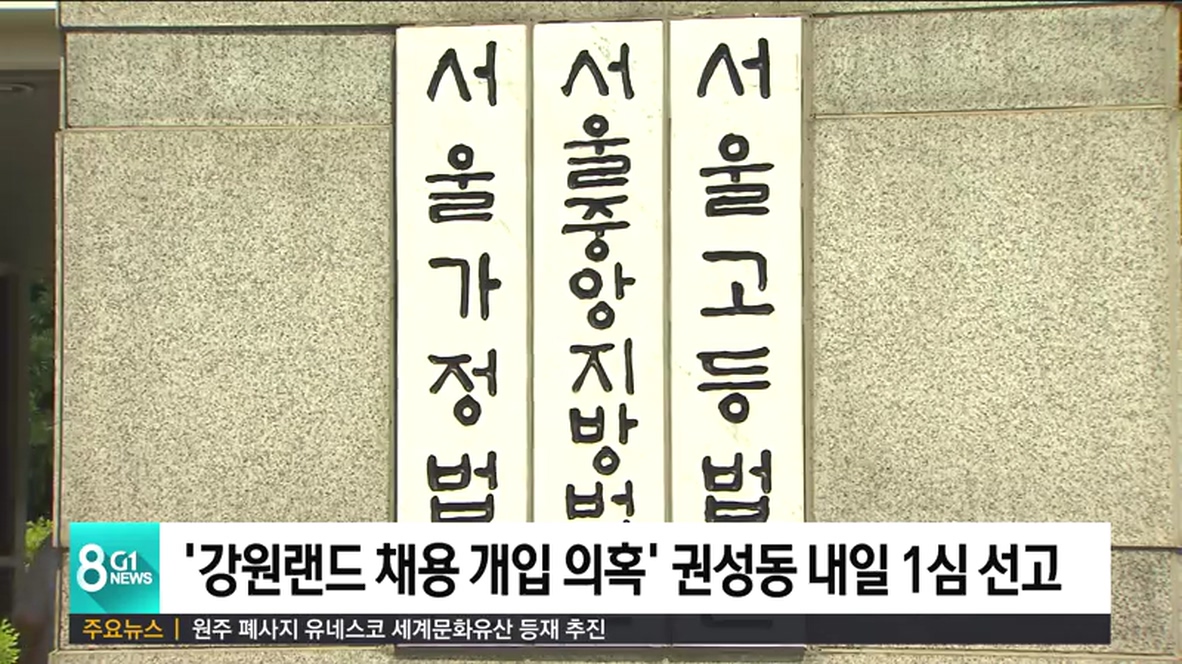 강원랜드의 직원 채용 과정에 영향력을 행사한 혐의로 기소된 권성동 자유한국당 의원에 대한 1심 선고공판이 내일 열립니다.