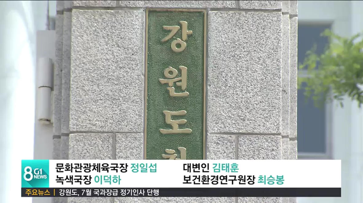 강원도가 문화관광체육국장에 정일섭 관광마케팅과장을, 녹색국장에 이덕하 투자유치과장을 승진 발령하는 등 7월 국과장급 정기 인사를 단행했습니다.