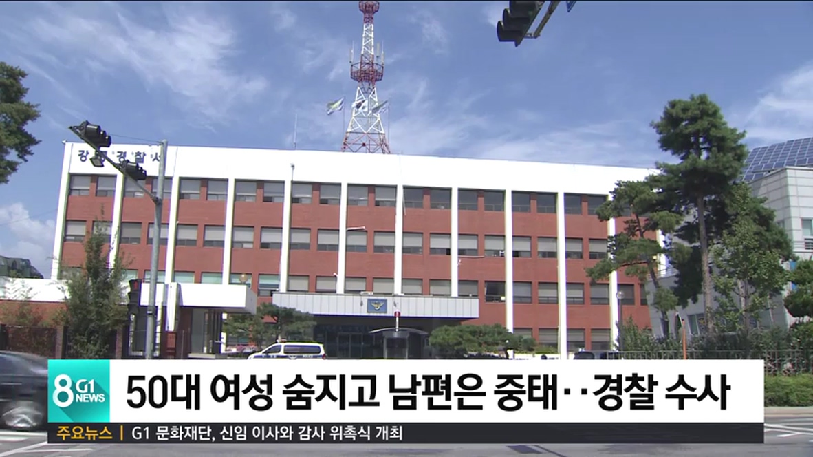어젯 밤 11시 쯤 강릉의 한 아파트에서 50대 여성이 숨지고, 60대 남편은 아파트에서 떨어져 다친채로 발견돼 경찰이 수사에 나섰습니다.