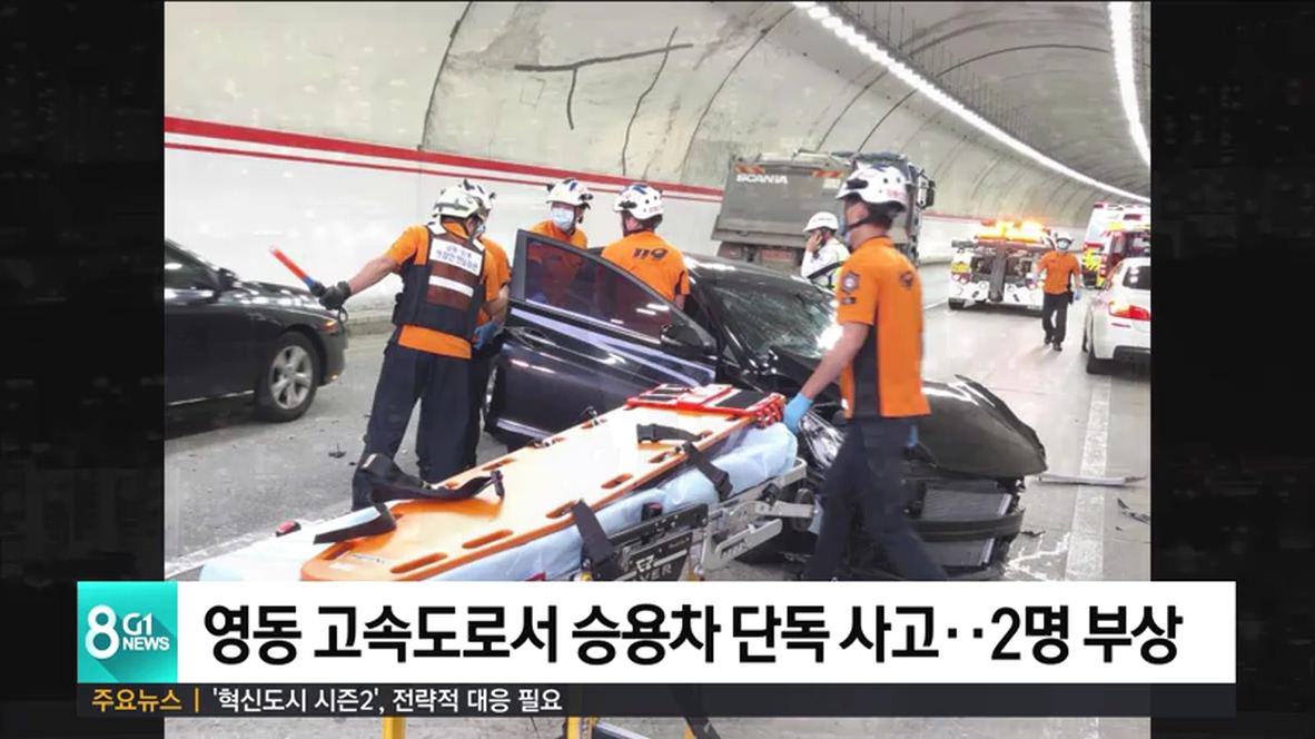강릉 고속도로서 승용차 단독 사고..2명 부상