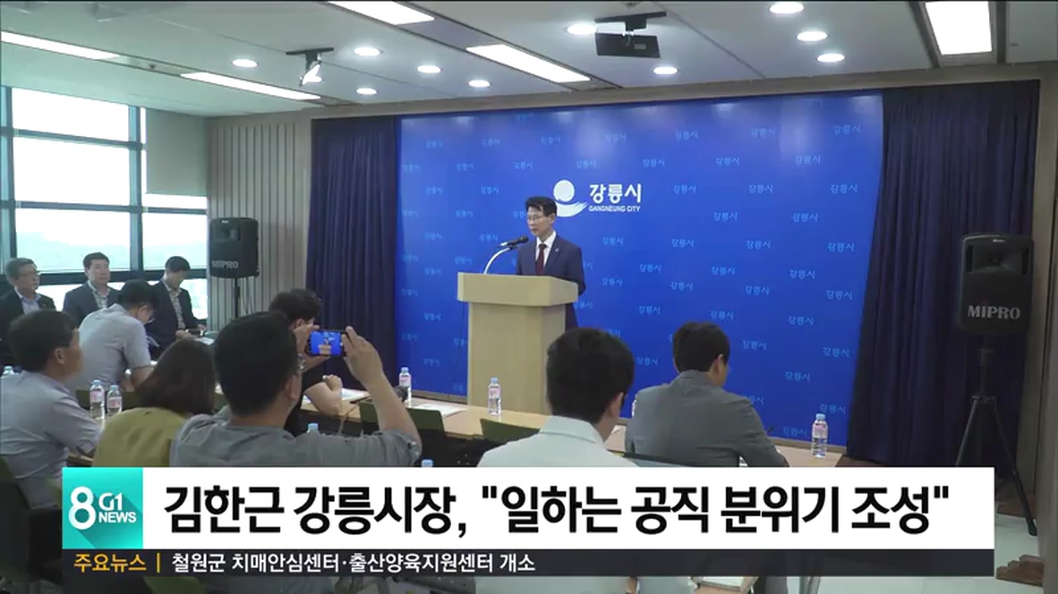 김한근 강릉시장은 과감한 발탁 인사를 통해 연공 서열을 타파하고, 주민이 체감하는 행정으로 성과를 낸 읍면동장을 향후 국장으로 승진시키는 등 공직 사회에 일하는 분위기를 조성하겠다고 밝혔습니다.