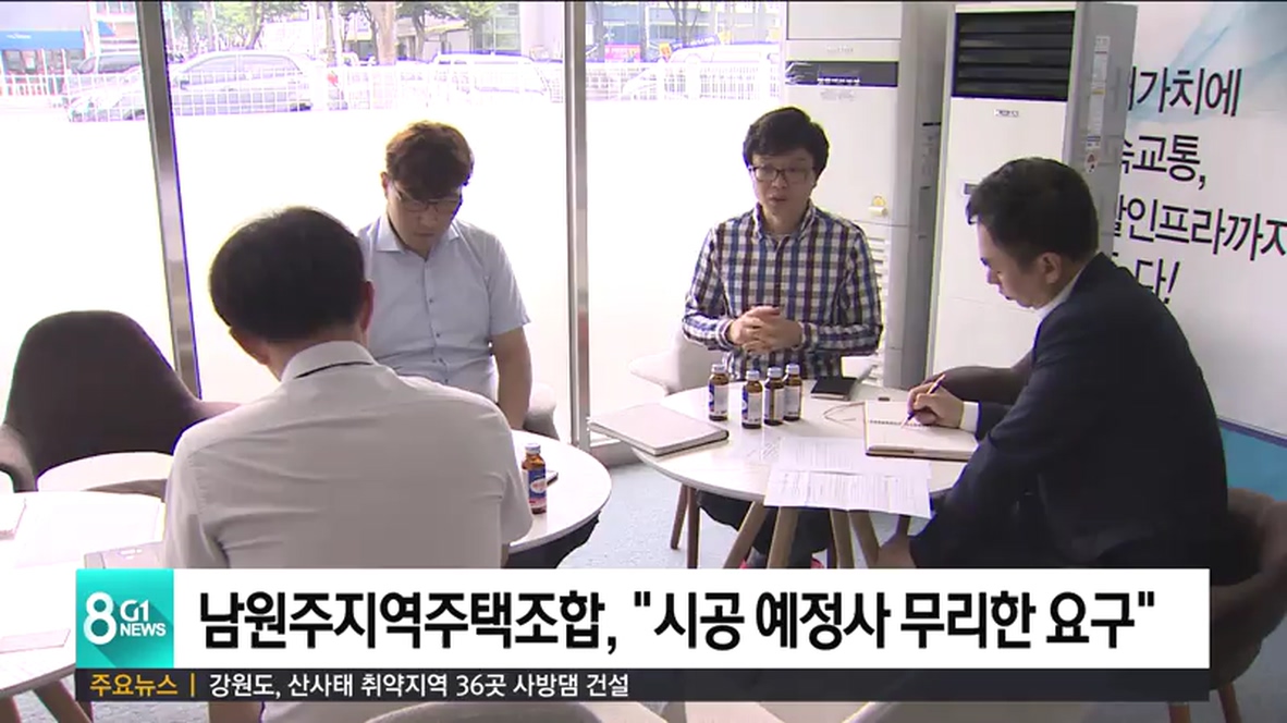 남원주지역주택조합 측은 원주시의원과의 면담에서 "공동 사업자인 시공예정사가 착공 의무를 져버리고 1년째 공사를 미루고 있다"며 "조합원 80%를 맞춰야 한다는 무리한 요구만 내세우고 있다"고 밝혔습니다.