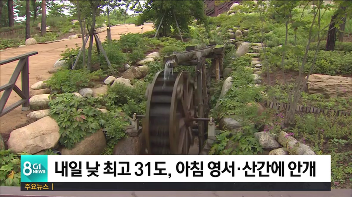 아침 최저기온은 15도에서 21도의 분포를 보이겠고, 낮 최고기온은 영서지역이 24도에서 31도, 영동지역은 26도에서 29도로 예상됩니다.