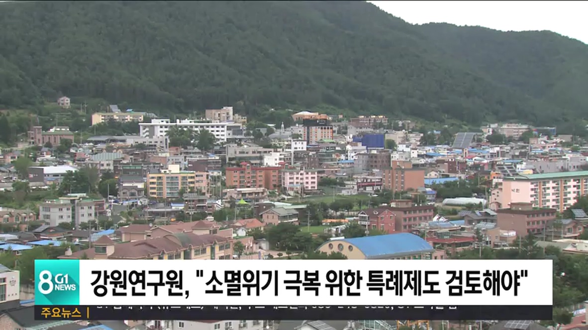 강원연구원은 '지역균형발전과 강원도 특례'라는 정책메모에서, 가속화 되고 있는 인구감소와 고령화 현상을 자치단체 힘만으로는 해결하기엔 한계가 있다며, 소멸 위기에 처한 자치단체를 정부가 별도로 지원하는 특례군 제도를 검토해야 한다고 제안했습니다.