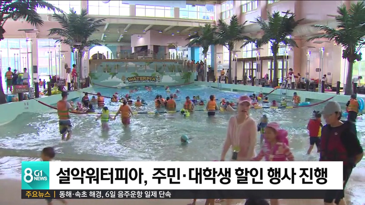 이 기간동안 속초와 고성, 양양 등 7개 시·군 주민들은 매표소에서 신분 확인을 하면 65% 할인된 2만5천원에, 대학생은 57% 할인된 3만원에 워터피아를 이용할 수 있습니다.
