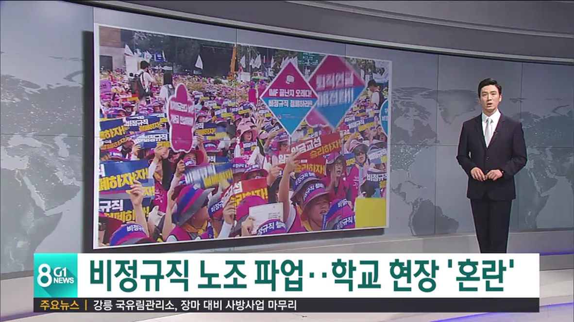 전국 공공부문 비정규직 노동자들이 오늘부터 총파업에 들어감에 따라, 도내 일선 학교에서도 혼란이 빚어졌습니다.
