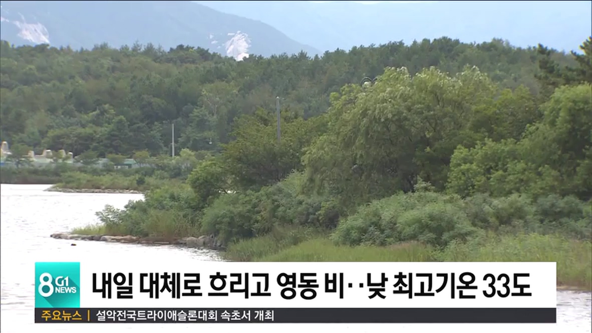 내일 강원 영서지역은 구름이 많고, 영동지역은 흐리고 때때로 비가 내리겠습니다.