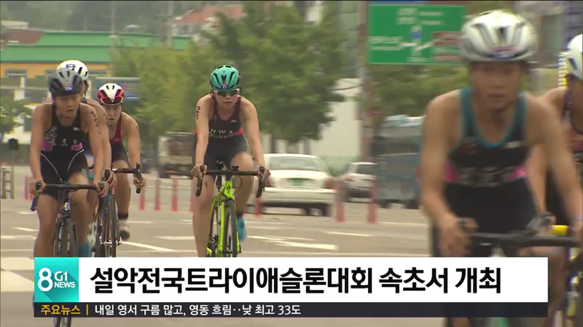 속초시와 대한철인3종협회가 개최한 2019 설악전국트라이애슬론대회가 속초 청호동 해변과 청초호 일대에서 열렸습니다.