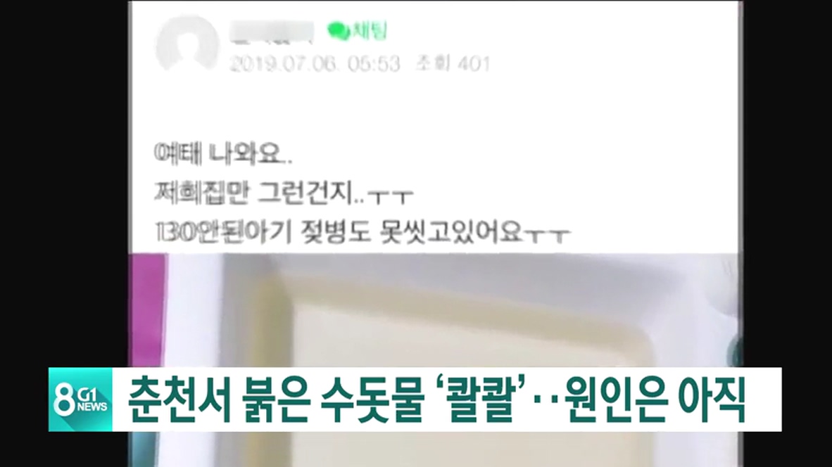 수도권 곳곳에서 붉은 수돗물 사태로 시끄러운 가운데, 최근 춘천에서도 붉은 수돗물이 나와 주민들이 불안에 떨고 있지만, 춘천시는 아직 정확한 원인을 파악하지 못하고 있습니다.