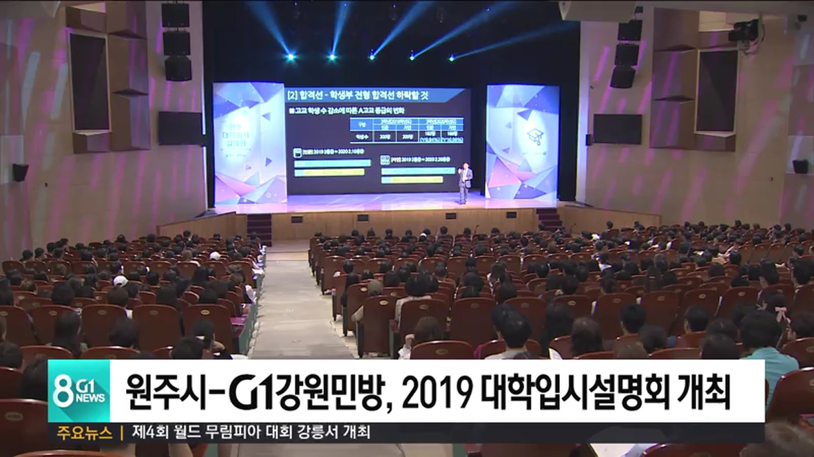 원주시와 G1강원민방이 고교 재학생들의 입시 준비에 도움을 주기 위해 기획한 '2019 대학입시설명회'가 오늘(14일) 원주 백운아트홀에서 열렸습니다.