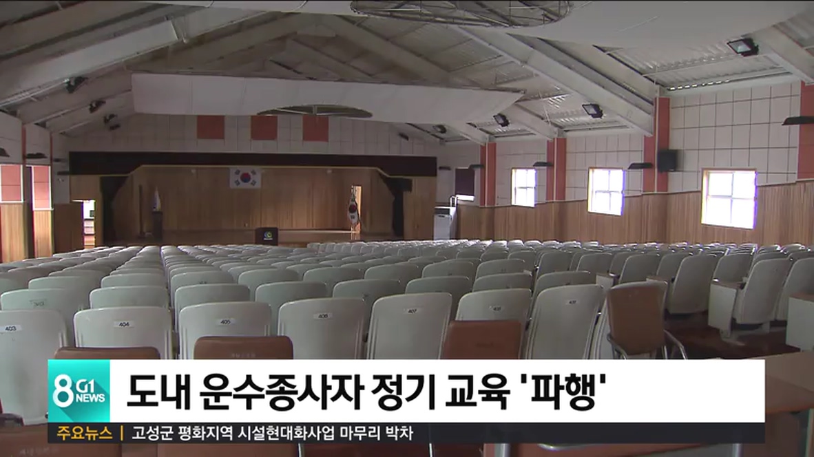 도내 관광버스와 시내버스, 택시 운수종사자들을 위한 정기 교육이 관계기관의 미흡한 준비로 파행을 빚었습니다.