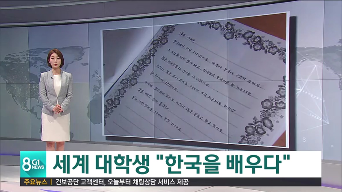 외국인 학생들이 자국에 있는 부모님께 한국어로 편지를 쓰느라 여념이 없습니다.