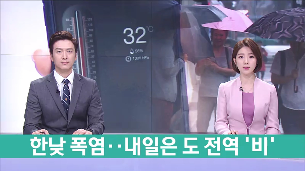 내일은 북상하고 있는 태풍 '다나스'의 영향으로, 도 전역에 비가 내려 더위는 잠시 주춤할 것으로 보입니다.