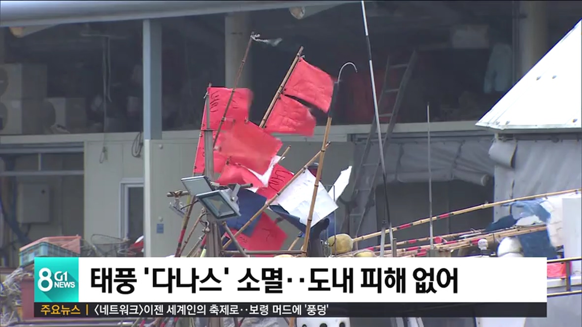 제5호 태풍 '다나스'가 우리나라 해상에 접근하면서 위력이 급격히 약화 돼, 다행히 도내에는 별다른 피해를 입히지 않았습니다.