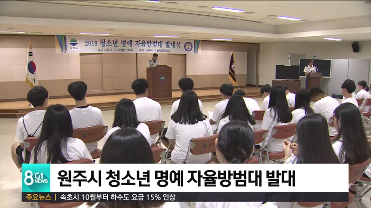 원주시 청소년 명예 자율방범대 발대식이 오늘 원주시청에서 청소년과 자율방범대원 300여명이 참석한 가운데 열렸습니다.