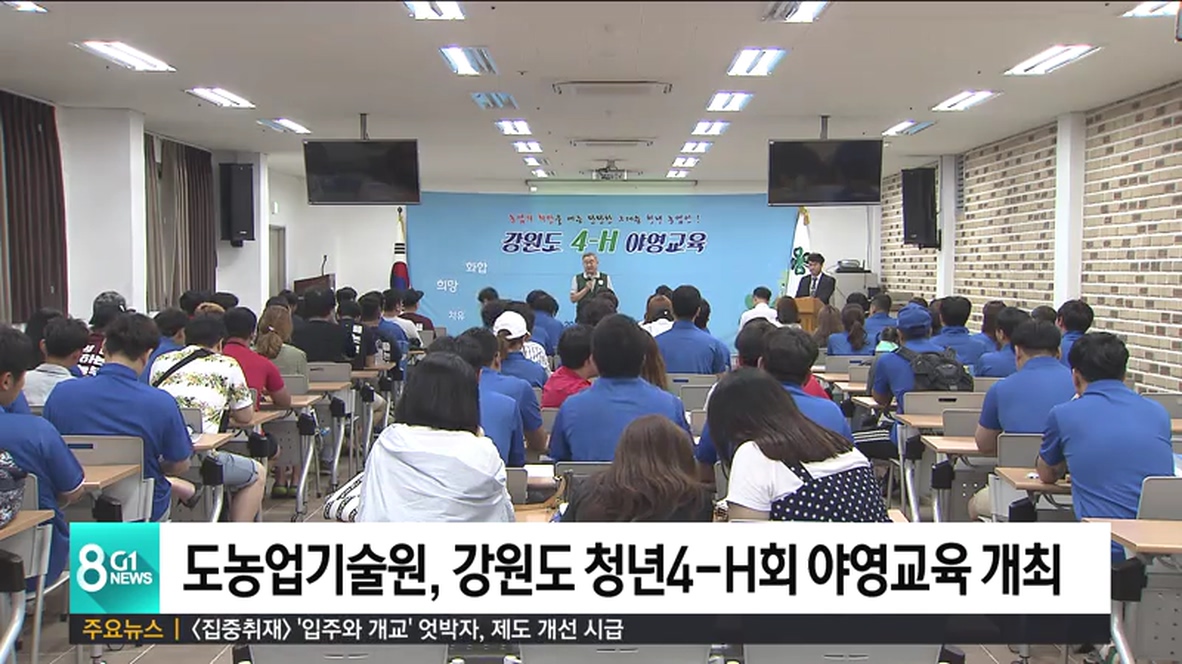 강원도농업기술원은 오늘부터 이틀간 춘천시 남산면에서 강원도 청년4-H 연합회 회원 등이 참석한 가운데, '우리의 행복이 농업의 미래'라는 주제로 강원도 4-H 야영교육 행사를 개최합니다.