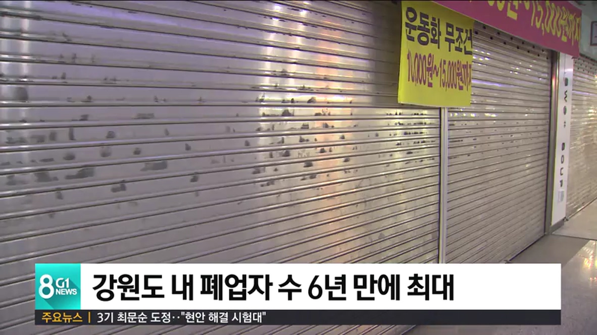 지난해 강원도에서 폐업한 자영업자 수가 6년 만에 최대치를 기록한 것으로 나타났습니다.