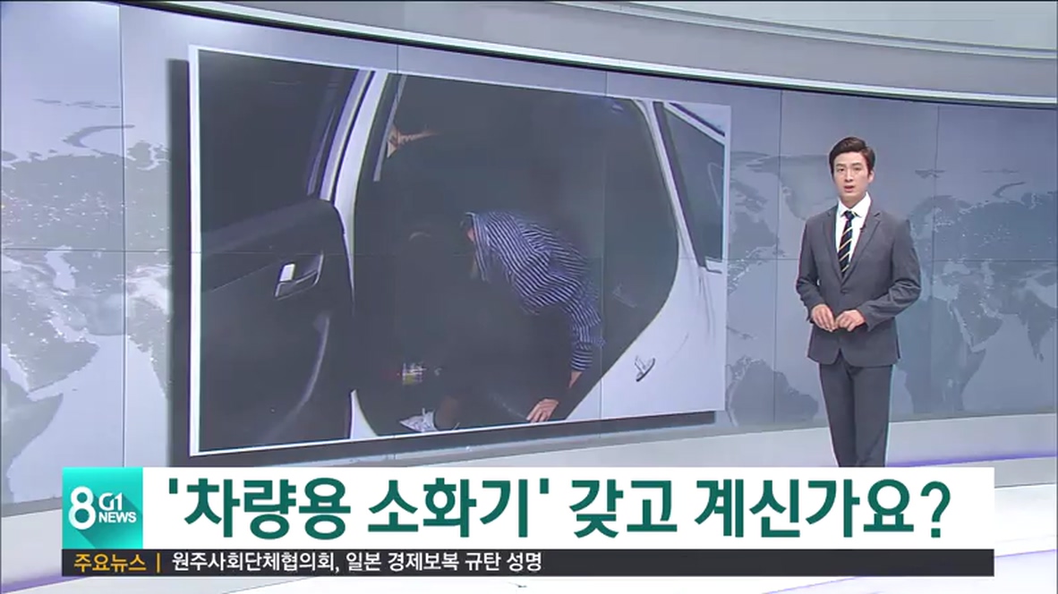 "현행법상 7인승 이상 차량에만 소화기가 의무적으로 비치되어 있습니다. 하지만 전체 차량화재 건수 중 40% 이상이 승용차에서 발생합니다"
