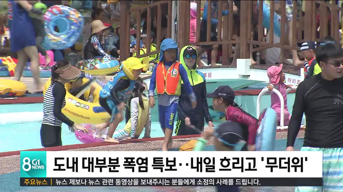 도내 대부분 폭염 특보..내일 흐리고 '무더위'