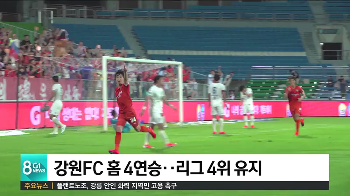 강원FC가 홈 4연승을 챙기며 리그 상위권 굳히기에 나섰습니다.