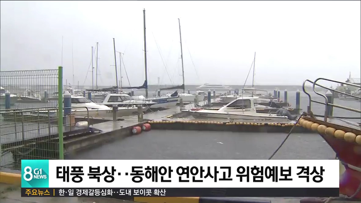 제8호 태풍 '프란시스코'가 한반도를 향해 북상하면서 해경이 동해안 연안사고 위험 예보제를 관심에서 '주의보' 단계로 격상했습니다.