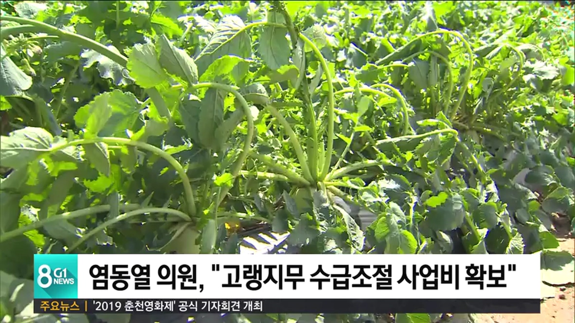 자유한국당 염동열 국회의원은 "농림축산식품부 이개호 장관 등과 적극적으로 소통해, 고랭지 무 가격 안정과 수급조절을 위한 사업비 17억원을 확보했다"고 밝혔습니다.