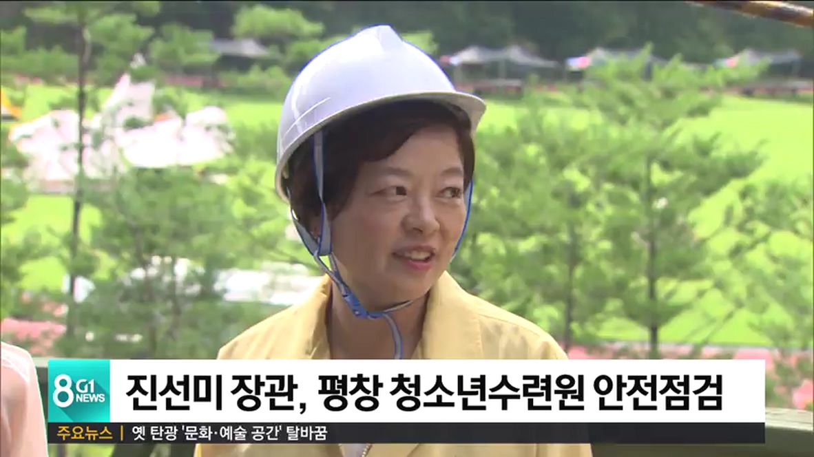 진선미 여성가족부 장관이 국립평창청소년 수련원에서 집라인과 인공암벽 등 모험시설물의 안전을 점검했습니다.