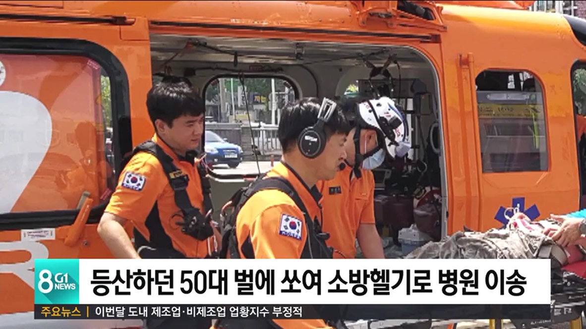 등반 도중 벌에 쏘인 59살 윤 모씨는 몸을 제대로 움직일 수 없게 되자 119에 신고했고, 출동한 소방헬기로 인근 병원에 옮겨져 치료를 받았습니다.