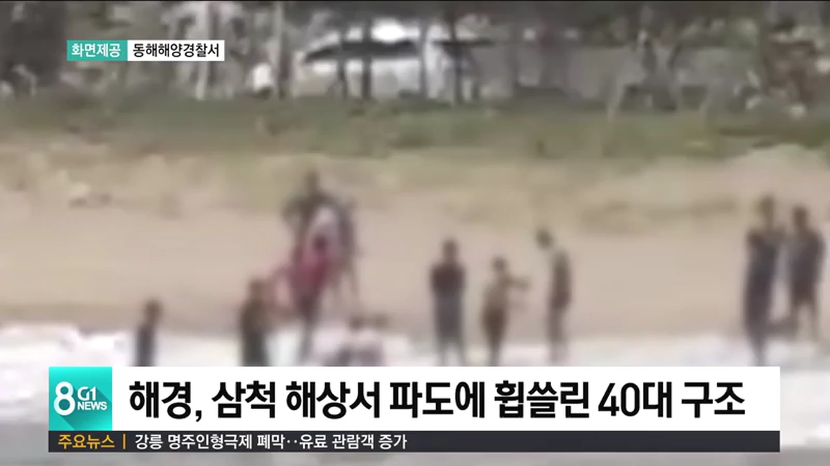 오늘 오전 10시 18분쯤 삼척시 상맹방 해수욕장 해상에서 너울성 파도에 휩쓸린 49살 A씨가 해경에 의해 구조됐습니다.