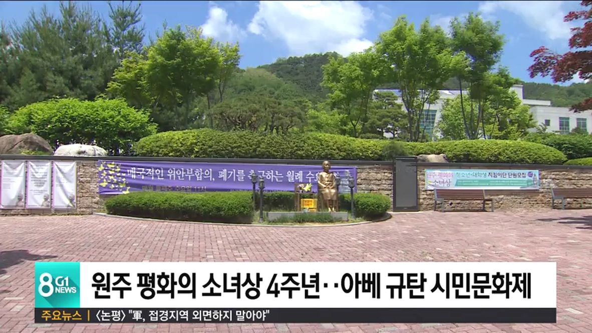 원주 평화의 소녀상 제막 4주년을 맞아, 오는 14일 오후 7시, 원주 평화의 소녀상 앞에서 아베 규탄 시민문화제가 열립니다.