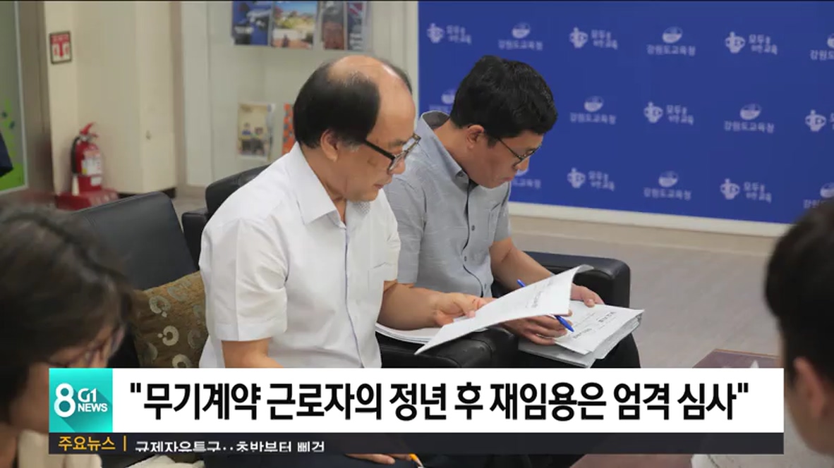 강원도교육청은 오늘 오전 기자회견을 열고, "교육청을 점거 농성 중인 청소원들은 65세를 정년으로 하여 직접 고용된 정규직 근로자"라며