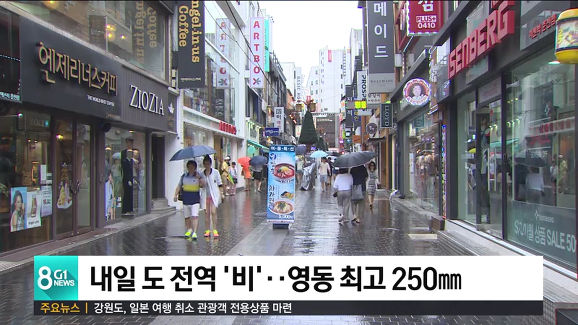 내일, 도 전역 '비'..영동 최고 250mm