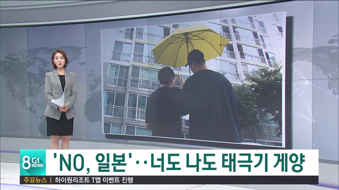시민단체가 오늘 태극기 게양률을 조사했는데, 비가 오는 궂은 날씨에도 일본 보이콧 분위기에 참여율이 높았습니다.