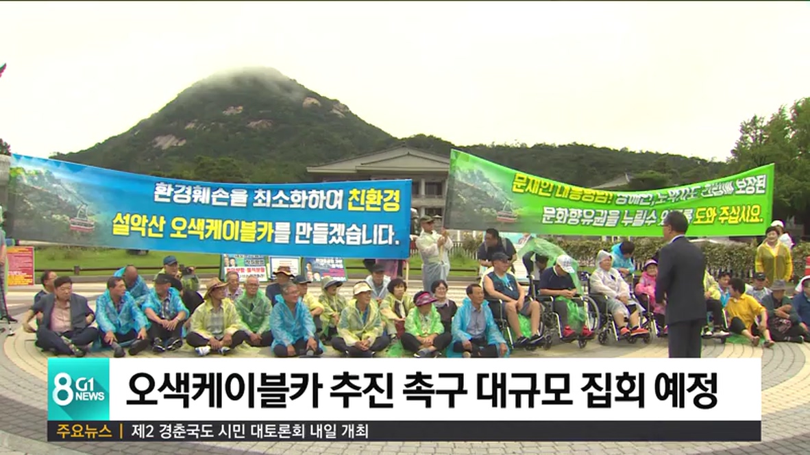 설악산 오색케이블카 추진위원회는 설악산 오색케이블카 추진 촉구 집회를 오는 27일 청와대 앞에서 군민과 한국지체장애인협회 회원 등 3천명이 참가한 가운데 개최한다고 밝혔습니다.