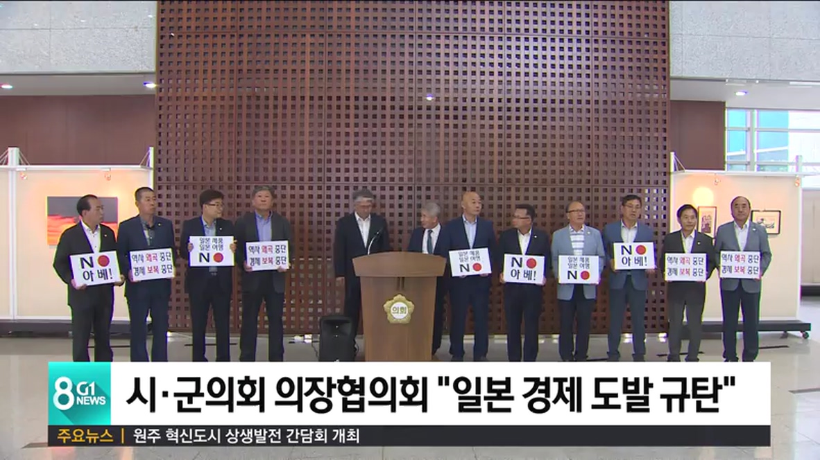 강원도 시.군의회 의장협의회는 오늘 원주시의회에서 일본 정부의 부당한 경제 도발을 규탄하는 성명서를 발표했습니다.