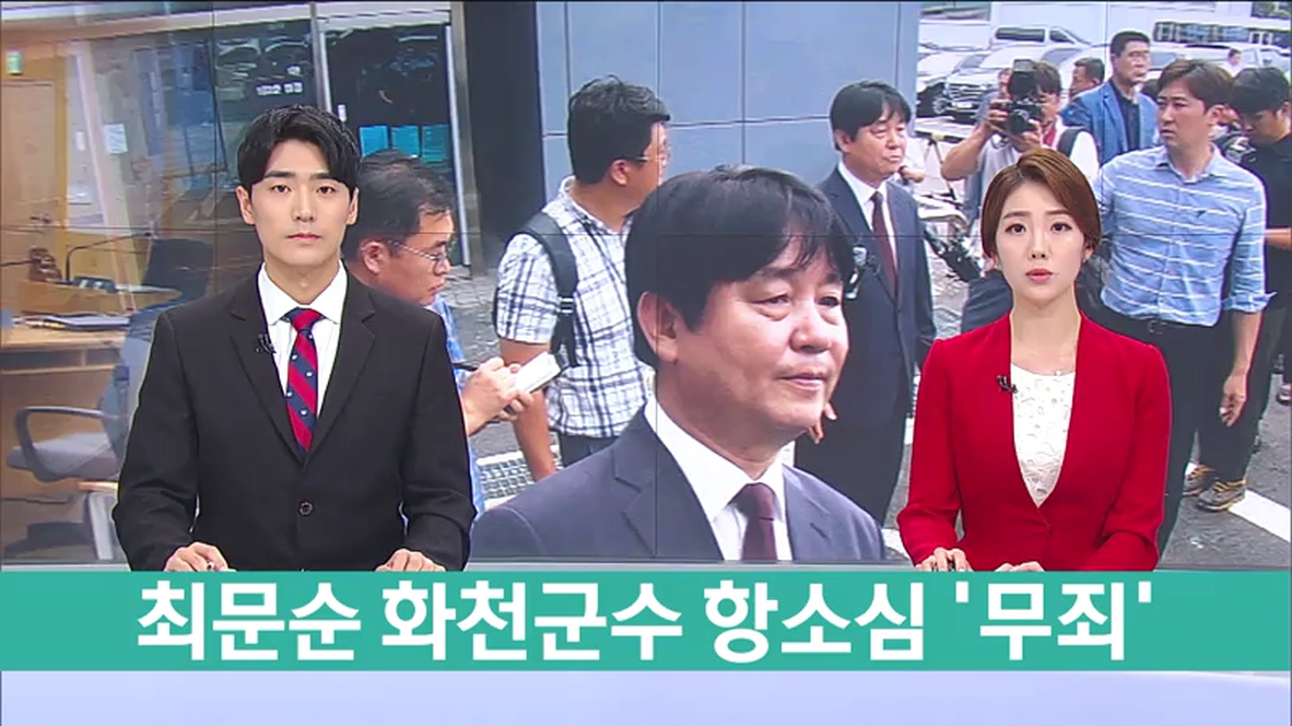 남) 1심 재판에서 당선 무효 위기에 내몰렸던 최문순 화천군수가 항소심에서 무죄가 선고됐습니다.