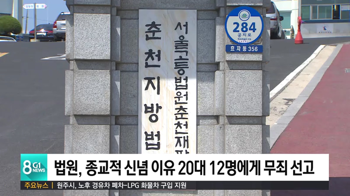 법원, 종교적 신념 이유 20대 12명에게 무죄 선고