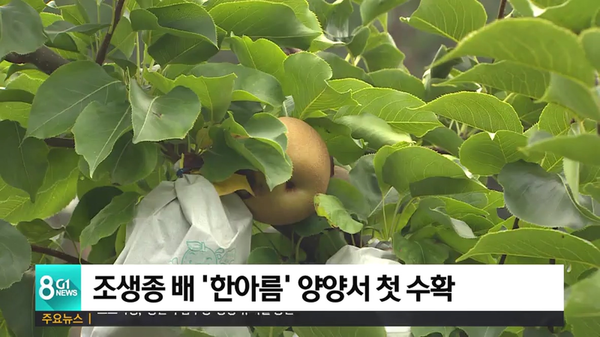 농촌진흥청은 양양군 현남면 정중환씨 농가에서 조생종 배인 '한아름' 재배에 성공해 오늘 첫 수확을 했다고 밝혔습니다.