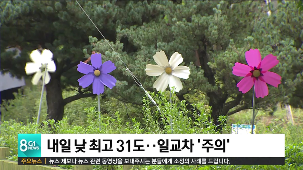 내일 강원도는 대체로 흐리겠고, 낮에는 30도 안팎까지 기온이 오르며 큰 일교차를 보이겠습니다.