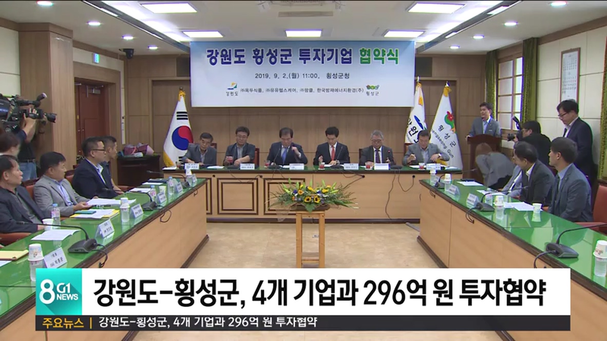 강원도-횡성군, 4개 기업과 296억원 투자협약