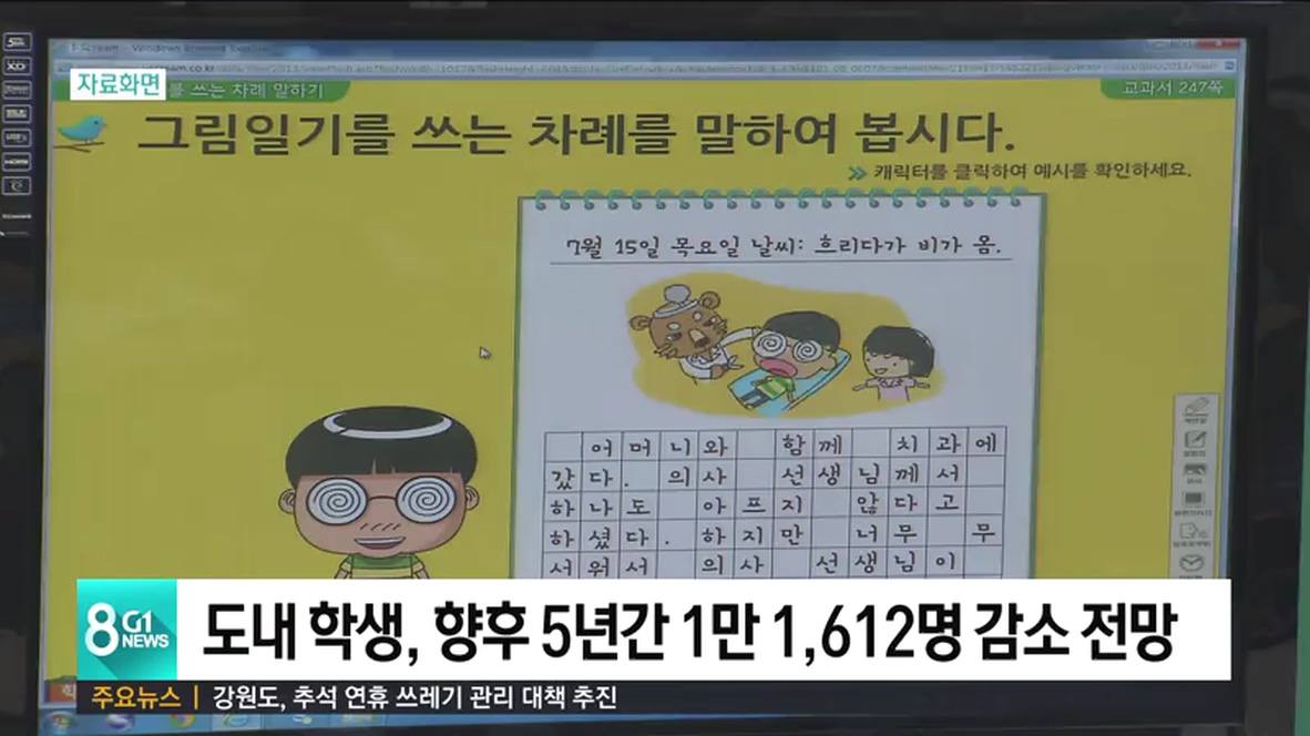 강원도교육청의 '2020~2024학년도 중장기 학생 추계'에 따르면, 현재 15만 5천 888명인 도내 학생 수는 내년에 1.85%, 2천 887명이 줄어 15만 3천 1명이 될 것으로 예상됩니다.