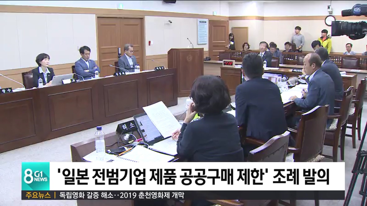 일본 정부의 보복성 수출 규제에 대한 반발이 계속되는 가운데, 강원도의회가 일본 전범기업 제품의 공공구매 제한을 위한 조례 제정에 나섰습니다.
