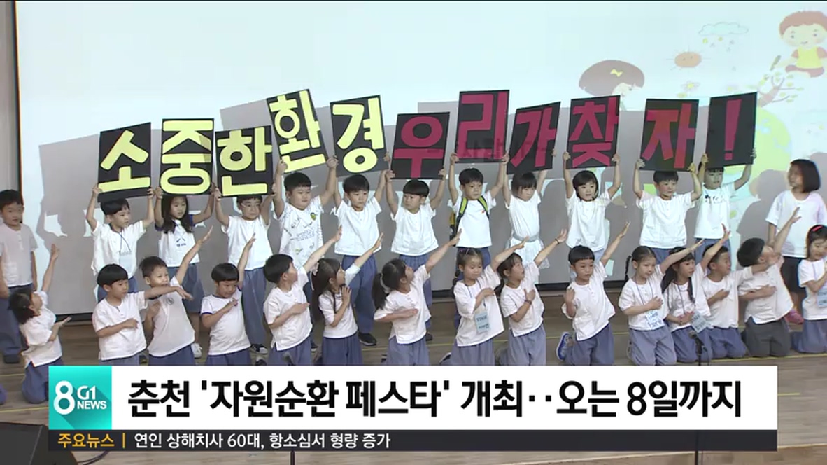 오늘은 춘천지역 7개 어린이집 아동들의 쓰레기 분리수거와 재활용에 대한 중요성을 알리는 '뽀시래기 대소동' 등 다양한 공연이 펼쳐져 눈길을 끌었습니다.