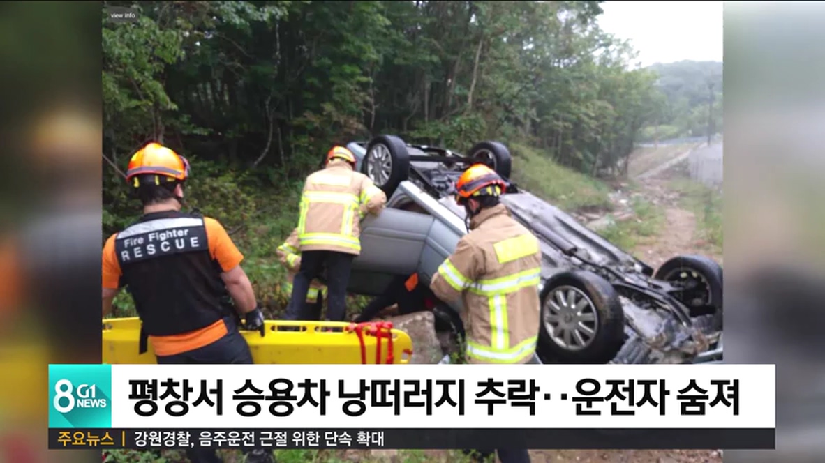 평창서 승용차 낭떠러지 추락..운전자 숨져