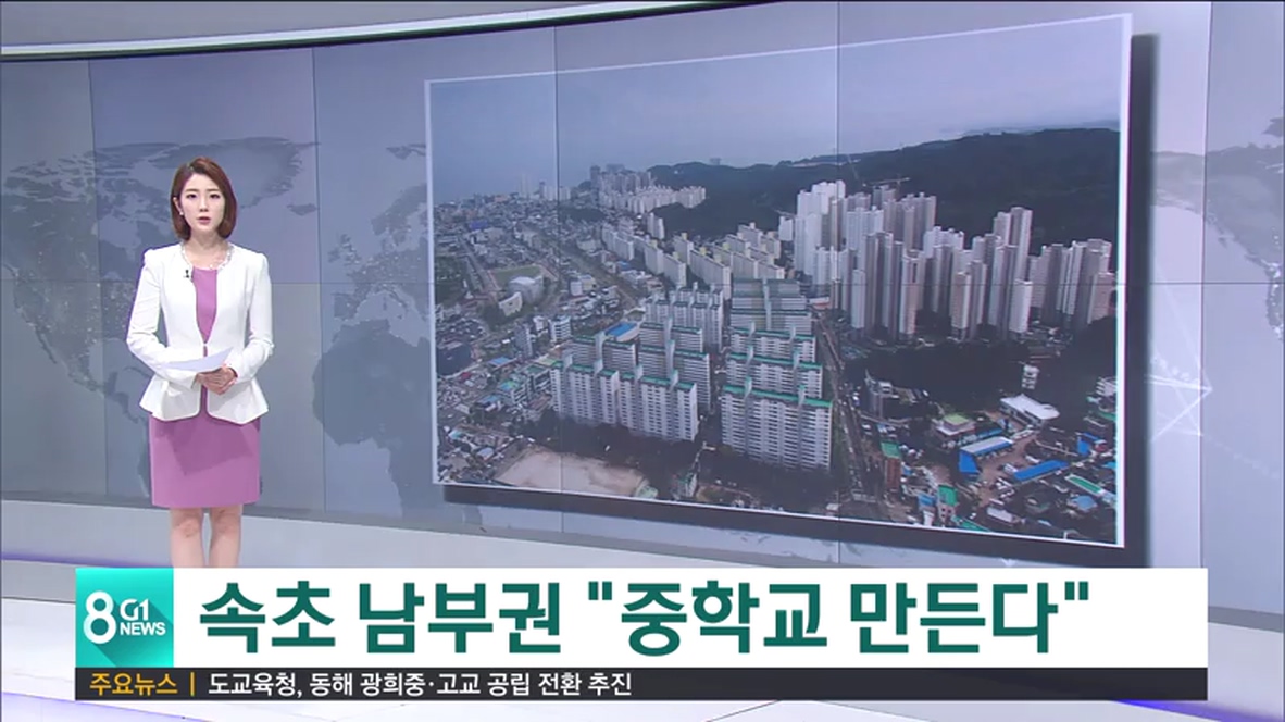 학교 신설은 속초중을 조양동 3만2천㎡ 부지로 옮겨 오는 2022년부터 남부권 학생들이 등교하는 것을 목표로 추진됩니다.