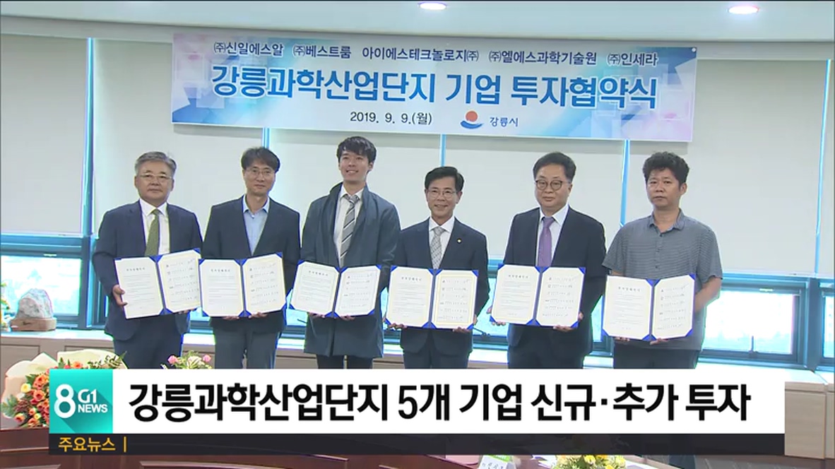 강릉시는 강릉 과학산업단지에 5개 기업이 195억 원을 투자하기로 하면서, 오늘 시청에서 투자 협약식을 맺었습니다.