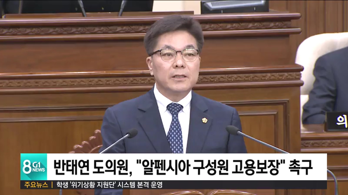 반태연 도의원은 도의회 임시회 본회의 5분 자유발언에서 "알펜시아에는 직접고용 임직원 500명을 비롯해 협력업체, 골프장 보조 인력 등 모두 천명의 구성원이 일하고 있지만, 매각 과정에서 배제될 것이라는 강한 의구심을 갖고 있다"고 지적했습니다.