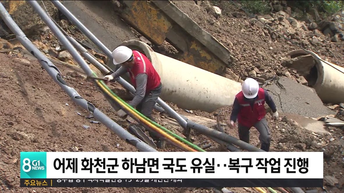 어제 화천군 하남면 국도 유실..복구 작업 진행