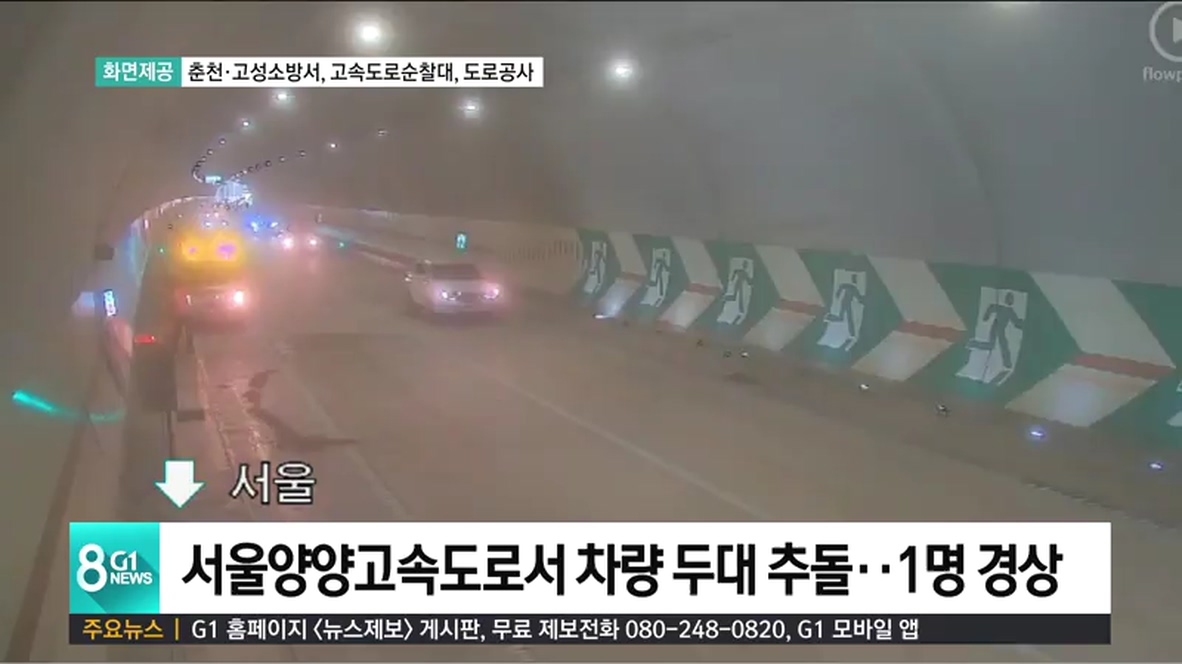 오늘(14일) 오후 3시 12분쯤 홍천군 화촌면 서울양양고속도로 서울방면 '화촌 6터널'에서 차량 두 대가 추돌하는 사고가 발생했습니다.